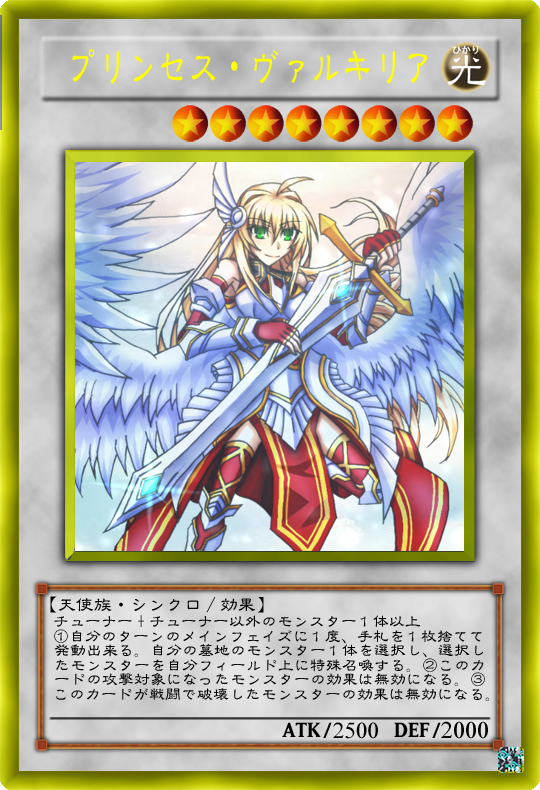 反骨童子さんにお願いして、当サイトの『異聞・遊戯王5D's』の主人公、上条遊里のエースモンスターの1体『プリンセス・ヴァルキリア』を描いて頂いたので、其れをカード化してみました!